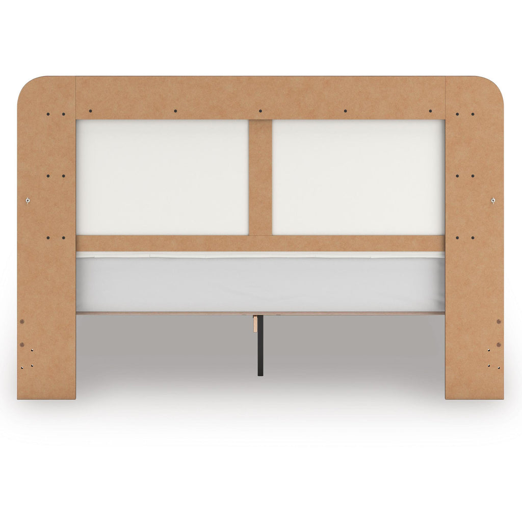 • Includes upholstered headboard, footboard, platform rails and roll slats
