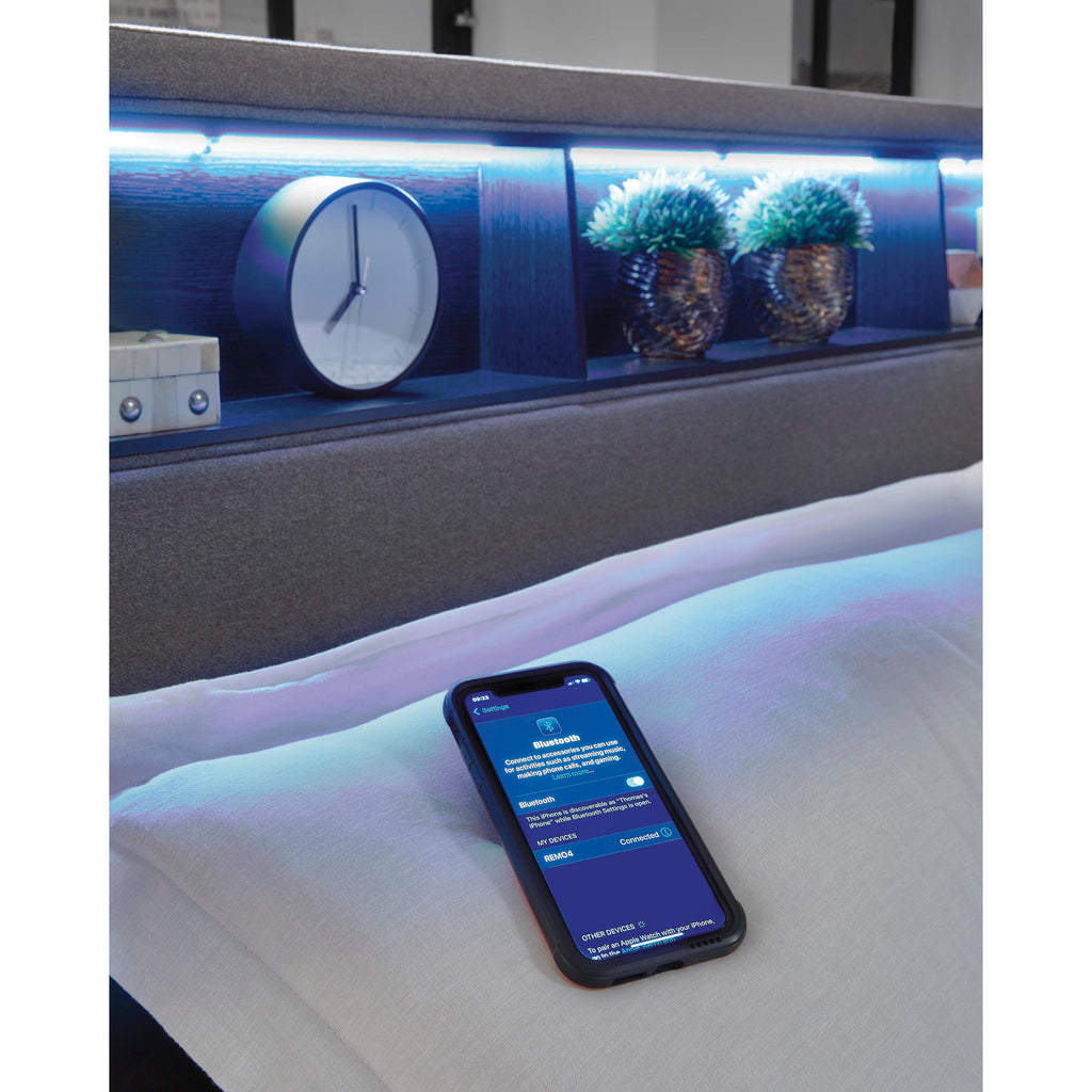 • Multicolored ambient LED lighting in headboard and lower footboard rail