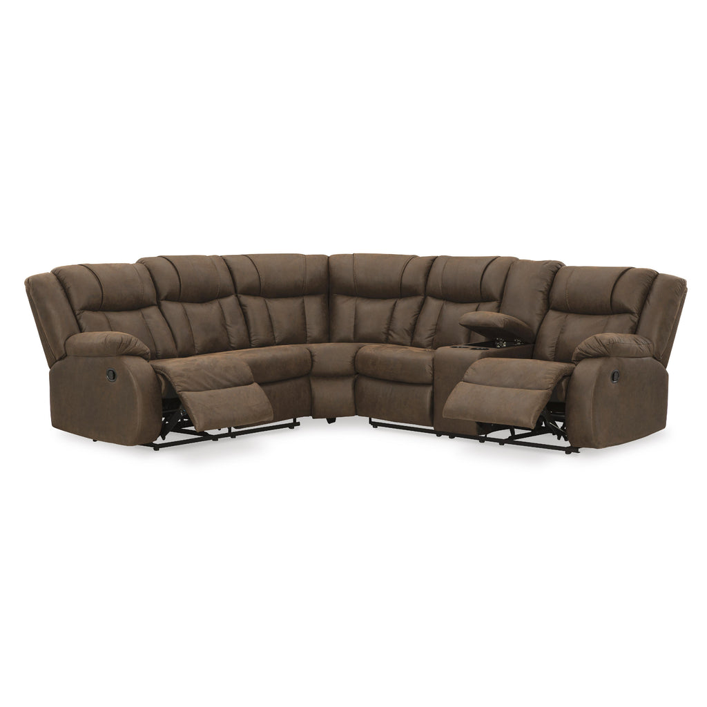 • Includes 2 pieces: left-arm facing reclining loveseat with half wedge and right-arm facing reclining loveseat with half wedge and console